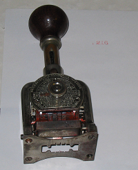 * foto: Bates Automatic Numbering-Machine, circa 1906, with a number printed by the machine (Nagle, Wikipedia)