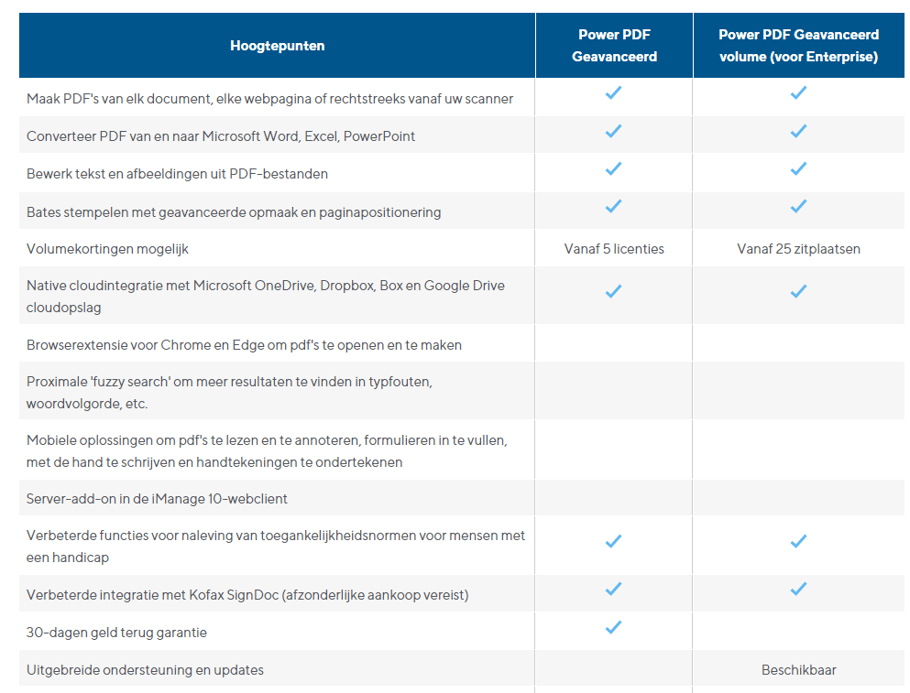 Verschillen tussen PowerPDF Advanced en Enterprise