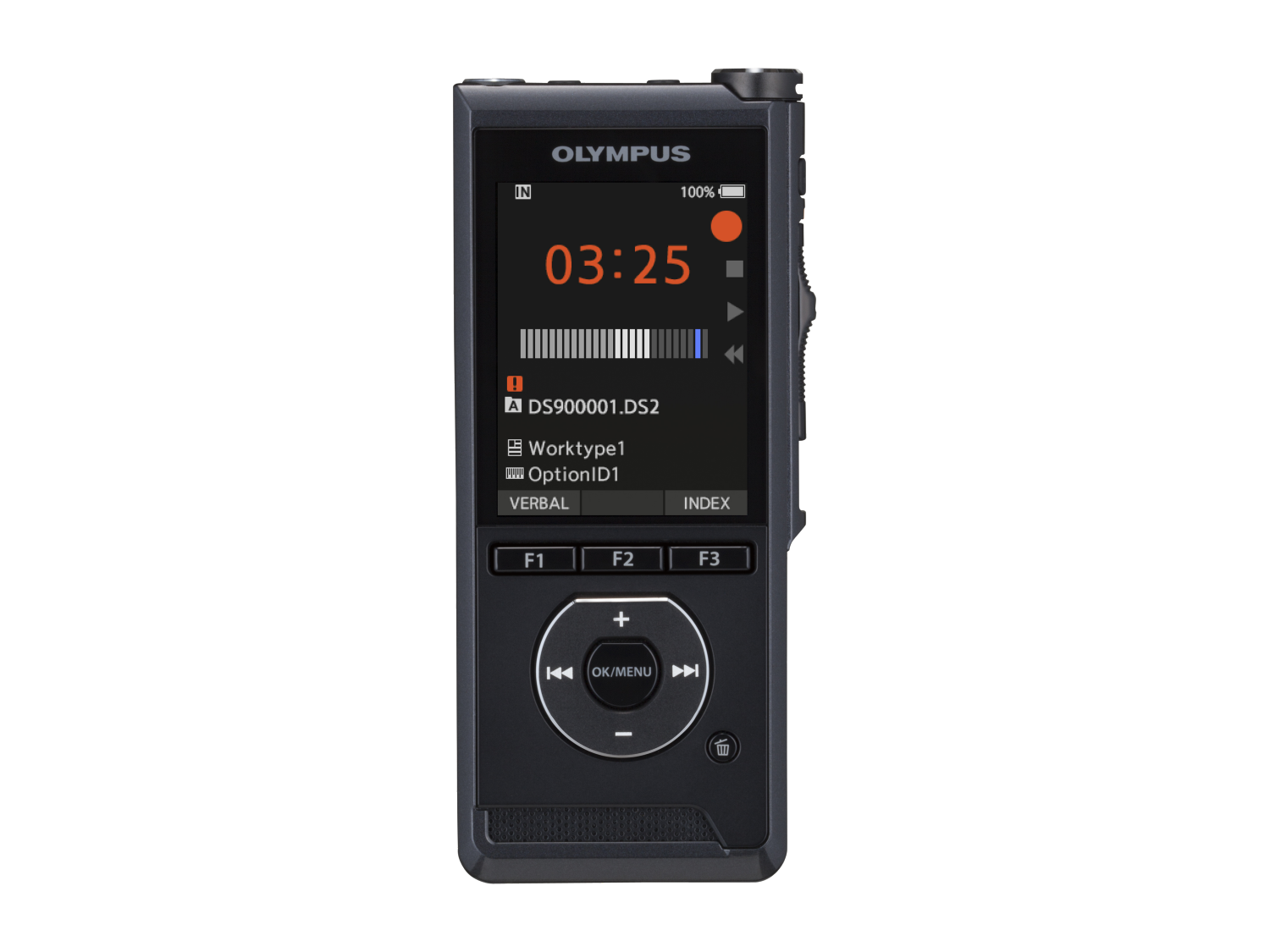 Bij gebruik van ODMS, workflow oplossing van Olympus, ziet u de dictaten en de status op het scherm.